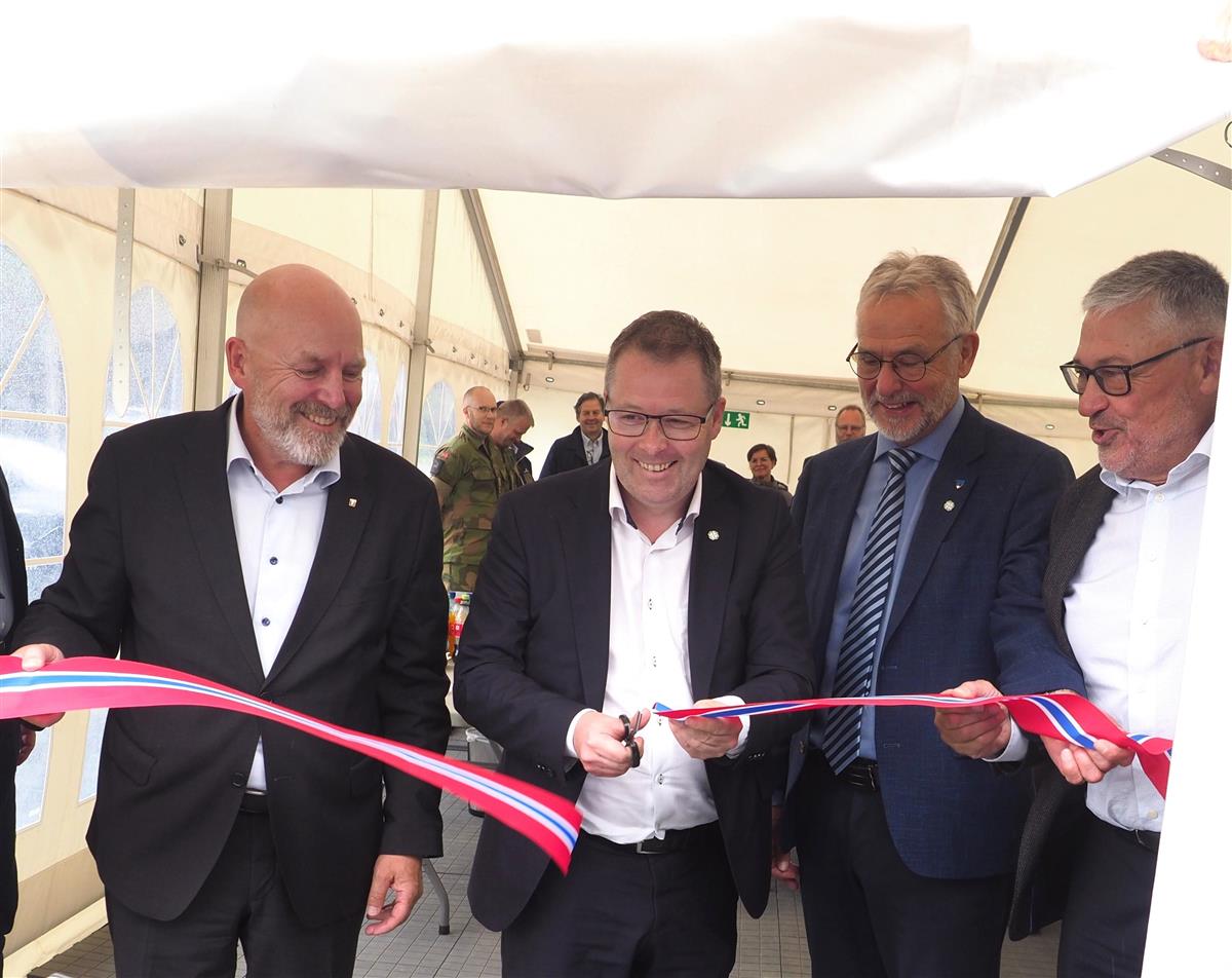 ÅPNING: Konserndirektør Terje Bråthen i KDA, forsvarsminister Bjørn Arild Gram, varaordfører i Narvik, Per Kristian Arntzen og daglig leder i Arena Nord Utvikling, Terje Steinsund markerte åpningen av Kongsberg Defence & Aerospace sitt kontor i Bjerkvik med snorklipping.