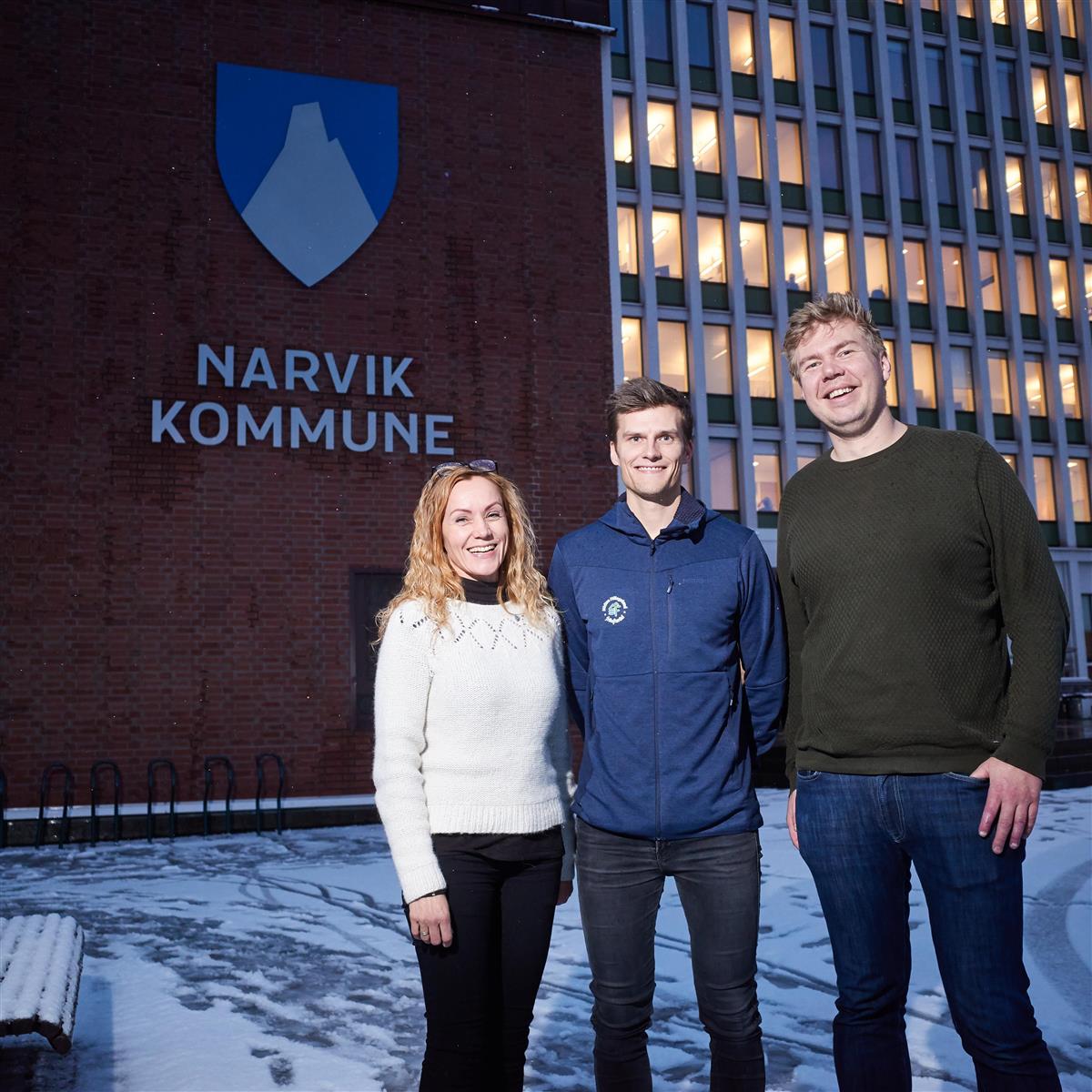 Lena Hope, kultursjef i Narvik kommune, Emil Bjørnå, daglig leder i Midtre Hålogaland Friluftsråd og Vegard Lind Jæger, styreleder i Narvik Frivilligsentral.
