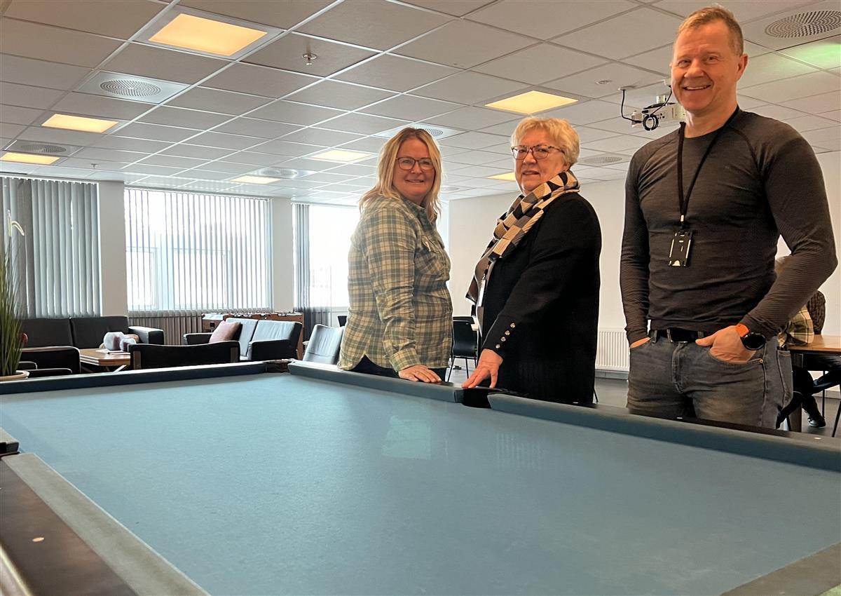 Avdelingsleder for Oppfølgingstjenesten i Narvik kommune, Ellen Olsen, og miljøarbeiderne Anne-Marie Hansen og Remo Johannessen åpner dørene til Værket Værested alle hverdager.